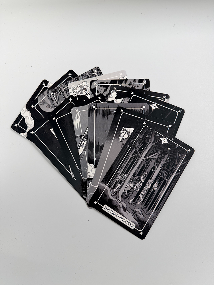 Plongez dans l'univers médiéval - fantastique de Medieval Grilfriends avec le jeu de tarot officiel ! Découvrez 22 illustrations inédites de Juliette Cousin, reprenant les éléments de cette BD à la fois épique et touchante. Présentées dans une boîte cloche, les cartes sont sublimées d'un pelliculage brillant, qui leur permettent de mieux glisser entre les doigts.