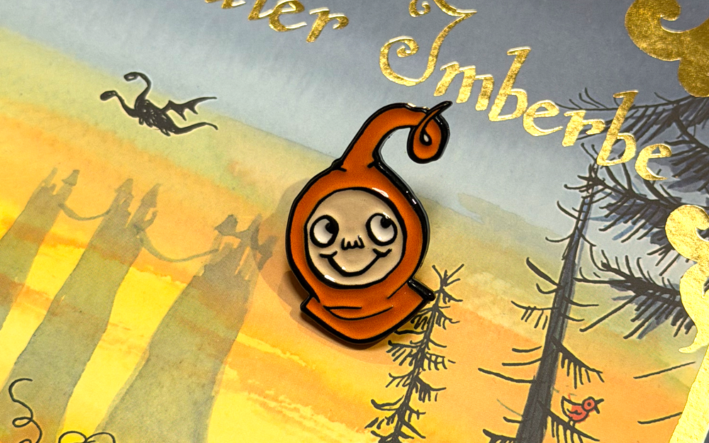 Dans Le chevalier imberbe, l'histoire vous est contée par un ménestrel malicieux à tunique orange. C'est un peu la mascotte de cette BD, et c'est pour ça que l'auteurice Tamos a eu l'idée d'en faire un pin's ! Affichez fièrement votre amour pour Le chevalier imberbe avec ce pin's à l'inimitable sourire en coin !