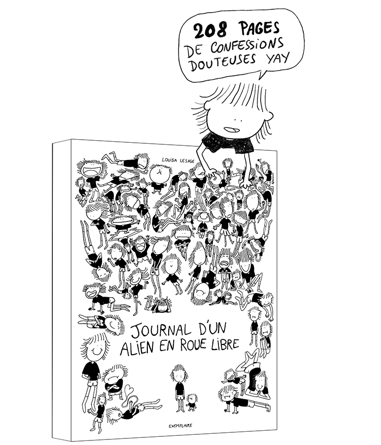 Moi c'est Louisa Lesage ; dans la vie j'ai 1 000 névroses et 0 daron, j'aime les chiens, je cours après la validation des hommes, je suis ✨on the spectrum✨ et je travaille officiellement dans l'animation 3D, en parallèle de mon racontage de vie sur Internet ! Je partage mes récits sur Instagram depuis environ 5 ans maintenant, c'était inévitable que je finisse chez Exemplaire (reusta parmi les reusta).
