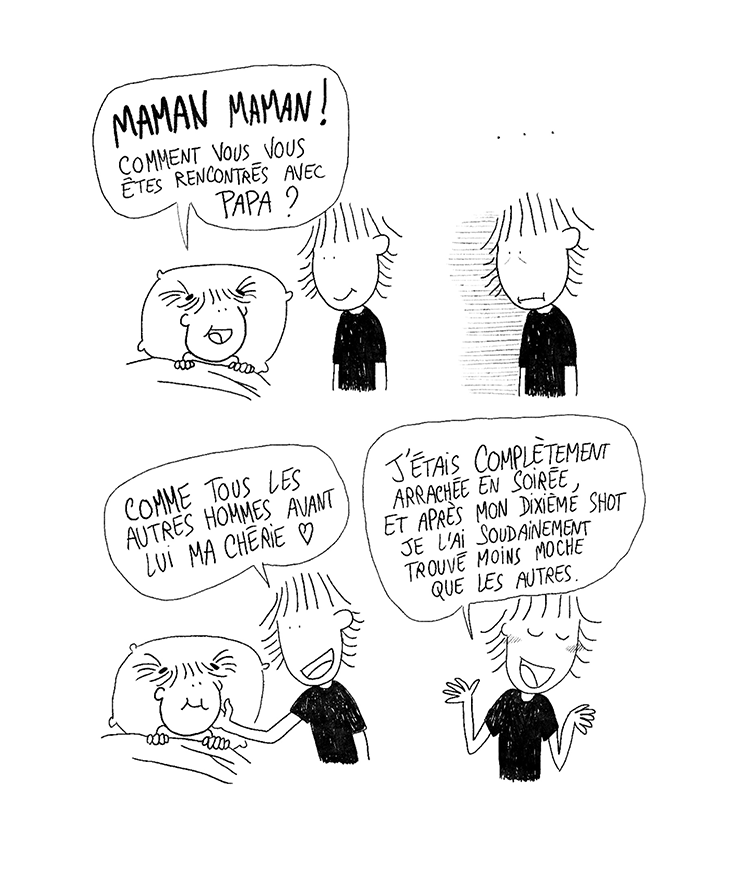 Depuis que j'ai été envoyée ici à l'aube du dimanche 20 septembre 1998, je trouve la vie terrestre très étrange et un peu poisseuse. Je ressens mille choses à la seconde, que j'essaye de comprendre et de traduire en traits grossiers. 26 ans que je me sens à côté de mes pompes, autant en tirer des trucs rigolos ! Si des humeurs me traversent, c'est bien qu'elles ont traversé un jour quelqu'un d'autre, et qu'il y a là des ponts à créer.