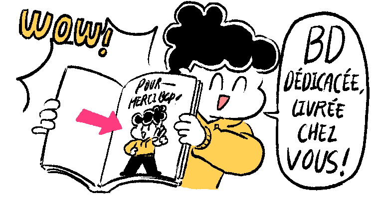 Pour cette contrepartie, je vous dessine (vous, ou la personne de votre choix) en personnage de ma BD, dans une cabine photo, en mode copain/copine avec Yoon Yves. Un portrait complice et plein de tendresse, à garder comme souvenir ou à offrir !