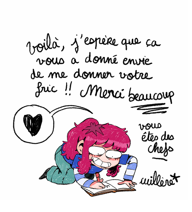 En plus, comme je vais bien prendre mon temps pour faire une BD super jolie et haute en couleur, bah vous aurez un peu oublié que vous l'avez précommandée et ça vous fera comme recevoir un cadeau gratuit (mais pas gratuit en fait) (mais ça vous fera trop plaiz vous verrez en fait).